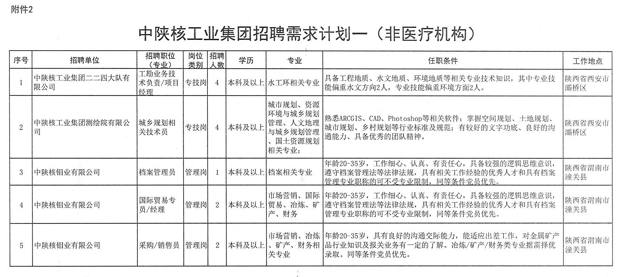 企業(yè)動態(tài)根據中陜核工業(yè)集團公司發(fā)展需要,現面向社會招聘,有關事項公告如下: