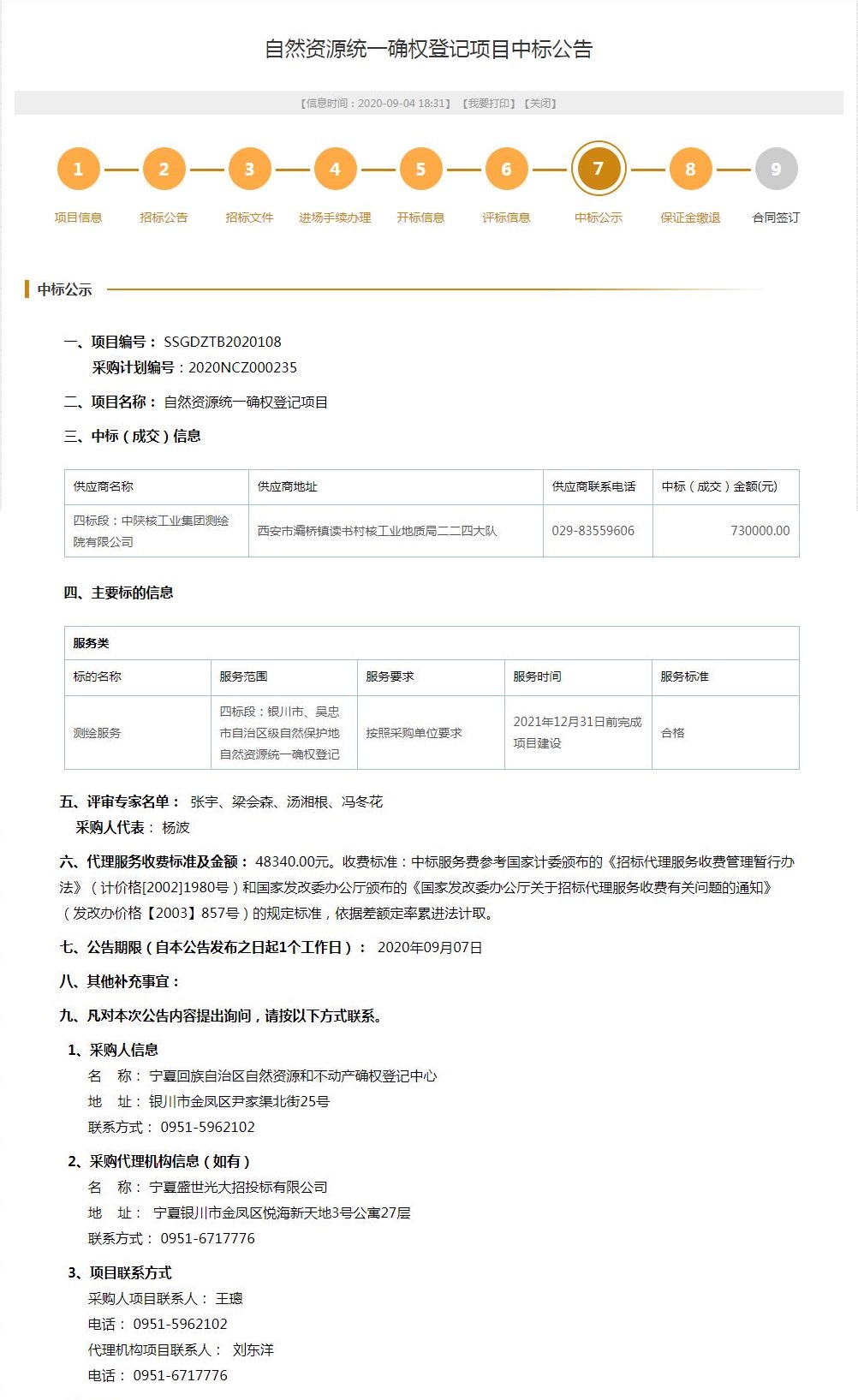 近日測繪院再次在寧夏回族自治區(qū)市場傳來捷報(bào),中陜核測繪院憑借先進(jìn)的設(shè)計(jì)方案、科學(xué)合理的報(bào)價(jià)和過硬的技術(shù)實(shí)力一舉中標(biāo)寧夏自然資源統(tǒng)一確權(quán)項(xiàng)目第四標(biāo)段。本項(xiàng)目工作區(qū)域?yàn)殂y川市、吳忠市,中標(biāo)金額為七十三萬元,工作內(nèi)容是為寧夏回族自治區(qū)級濕地自然公園、森林自然公園、地質(zhì)自然公園及自然保護(hù)區(qū)進(jìn)行劃界確權(quán)。