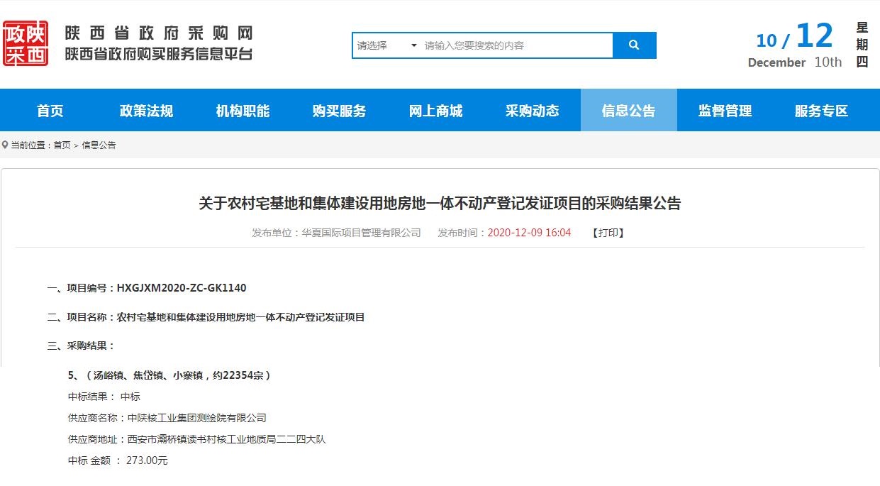 在2020年即將結(jié)束的時刻,經(jīng)過無數(shù)個日夜不斷拼搏進取,中陜核測繪院12月9日成功中標藍田縣農(nóng)村宅基地和集體建設(shè)用地房地一體不動產(chǎn)登記發(fā)證項目第五標段。