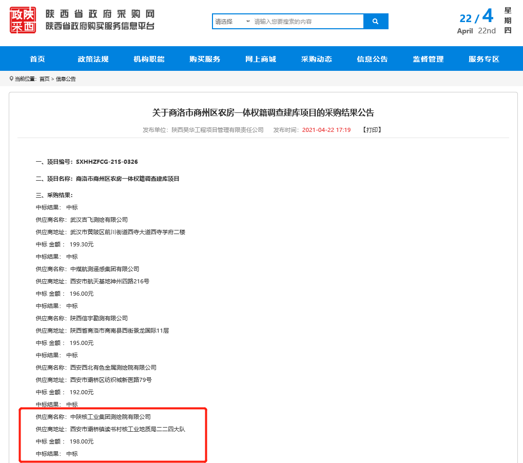 業(yè)績(jī)展示五一國(guó)際勞動(dòng)節(jié)來臨之際,在公司領(lǐng)導(dǎo)班子支持下,在經(jīng)營(yíng)發(fā)展部和新疆分公司同仁的努力下,再次傳來中標(biāo)喜訊。中陜核測(cè)繪院憑借突出的業(yè)績(jī)、雄厚的技術(shù)實(shí)力以及良好的市場(chǎng)信譽(yù)脫穎而出,成功中標(biāo)“商洛市商州區(qū)房地一體權(quán)籍調(diào)查建庫(kù)項(xiàng)目第七標(biāo)段”。