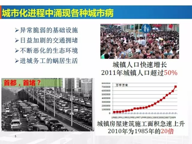 城鎮(zhèn)化就會帶來一些復雜的系統(tǒng)方面的問題:異常脆弱的基礎設施,日益加劇的交通擁堵,不斷惡化的生態(tài)環(huán)境和進城務工者的蝸居生活,這就是我們超大城市面臨的幾個主要的問題。