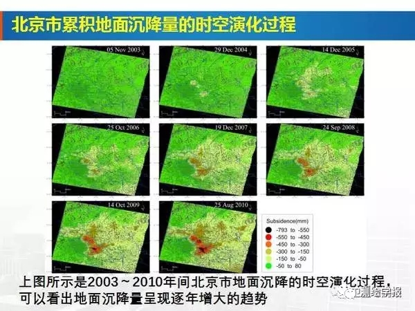 沉降逐年的變化,是越來越快,從2003年看不到明顯的沉降,到了2010年沉降是越來越明顯,我們已經把這些成果報給了中央領導。