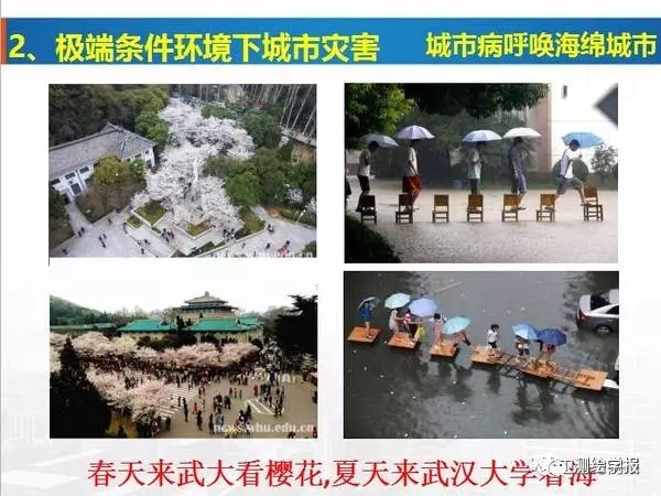 那么就出現(xiàn)了東邊日出、西邊雨。我們就會發(fā)現(xiàn)北京遇到的風雨雹的異常天氣的出現(xiàn);那么武漢就會出現(xiàn)一個晚上500mm的降水就把整個城市給淹了,人們戲稱,“春天到武大看櫻花,夏天來武大看?!?。2012年北京有暴雨,2011年武漢市有內澇,2013年光昆明的雨災損失就達到一億元以上。