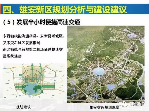 那么第五個,我們建議發(fā)展半小時便捷的高速交通。讓京津冀,雄安與北京,與天津之間能夠有個便捷的、快速的地鐵或者高鐵或者高架的交通。這樣區(qū)域的整體感會加強。我們很多人可能住在北京去雄安上班或者住在雄安去北京上班,這件事情的實現(xiàn)需要靠一個高速的交通網。我們希望二者間的交通時間能夠控制在半小時或者一小時。好的規(guī)劃才能保證整體的一個發(fā)展。